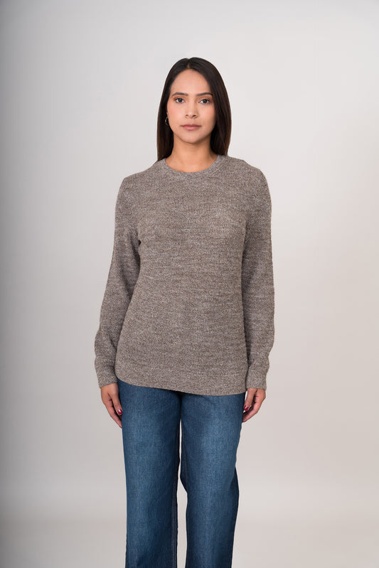 Suéter de cuello redondo para mujer, con mangas largas y pretina ligera en las mangas...