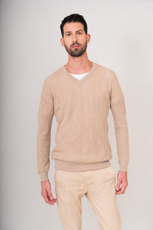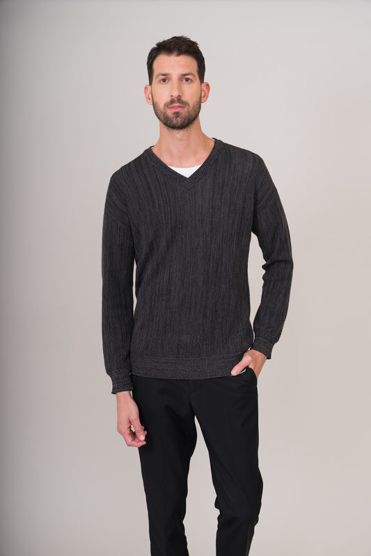 Suéter de punto fino con textura acanalada, ideal para un look casual elegante. El cuello...