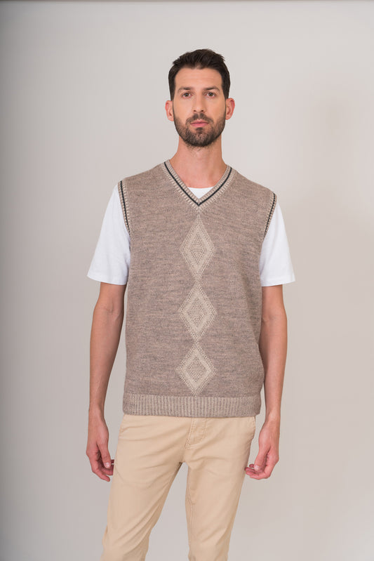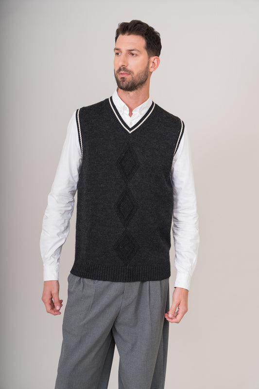 Chaleco de punto fino en cuatro colores. Mezcla de algodón pima, alpaca y lana. Diseño...