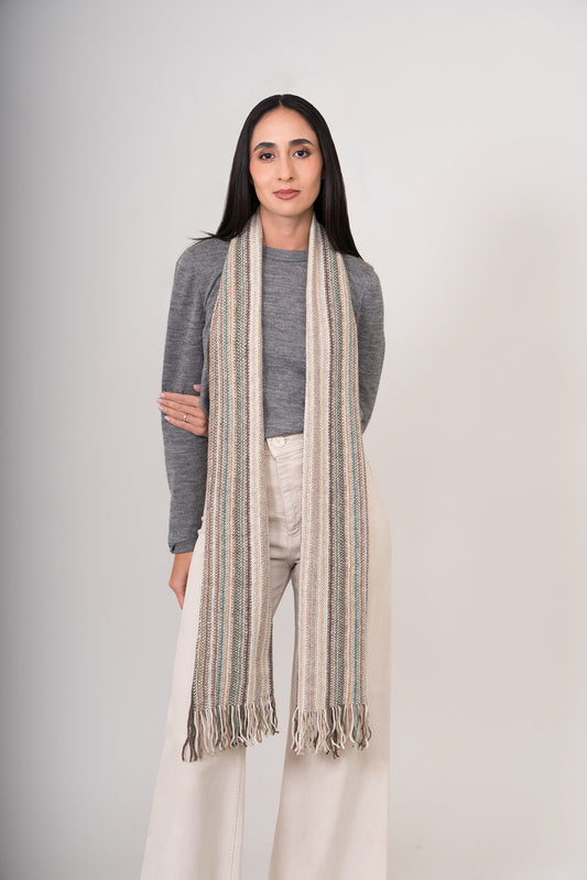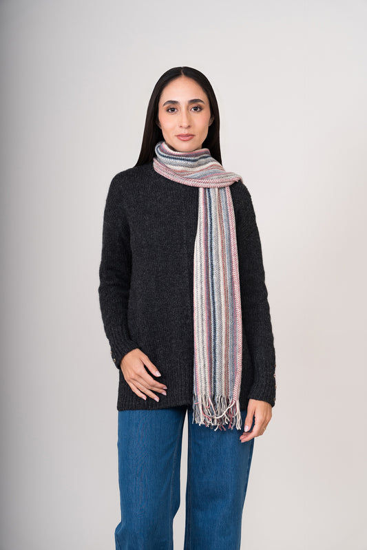 Chalina tejida en una mezcla de alpaca y poliamida. Diseño a rayas verticales multicolores. Textura...