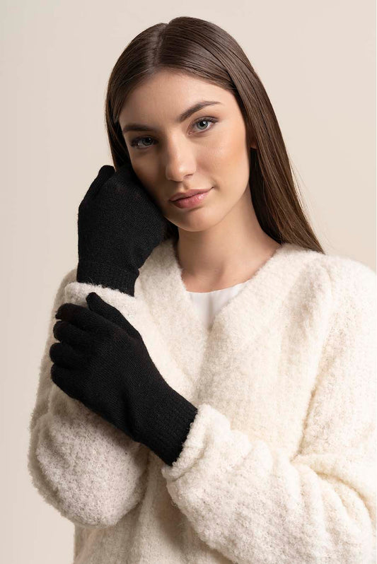 Exclusivos guantes de color entero, elaborados de alpaca y lana, son perfectos para una tarde...