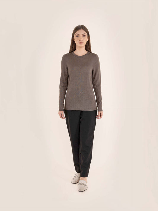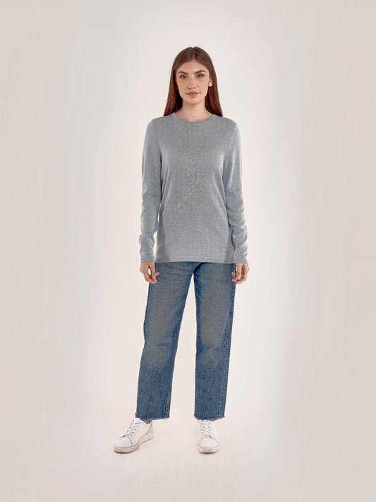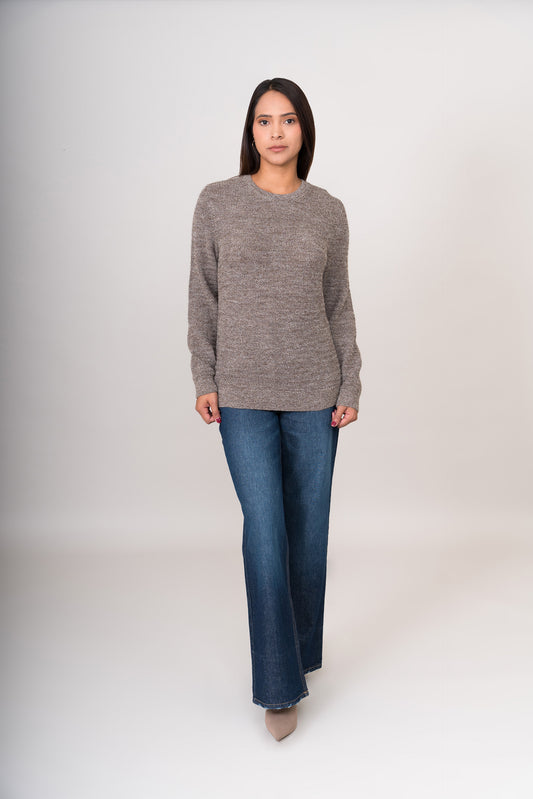 Suéter de cuello redondo para mujer, con mangas largas y pretina ligera en las mangas...