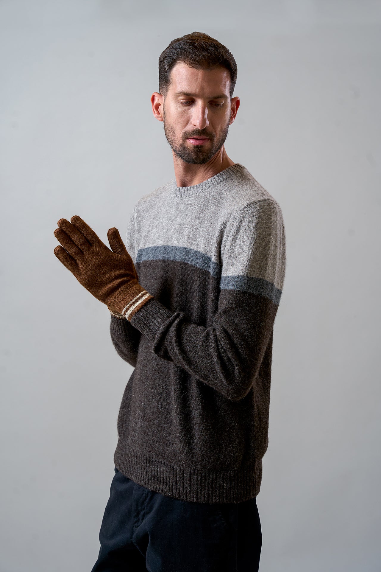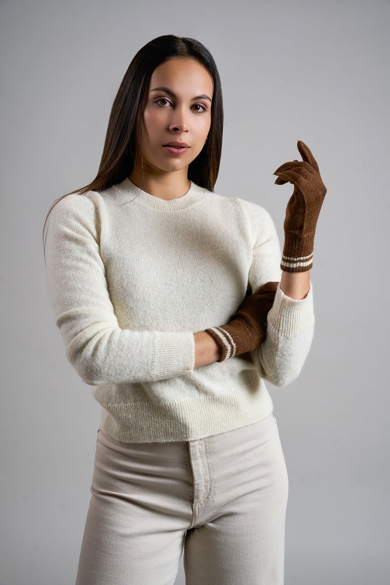 Guante Remate 103 confeccionado en alpaca, unisex, de color entero con diseño a rayas en los puños. Ofrece un accesorio cálido, elegante y versátil, ideal para complementar cualquier look. | Material predominante: Alpaca