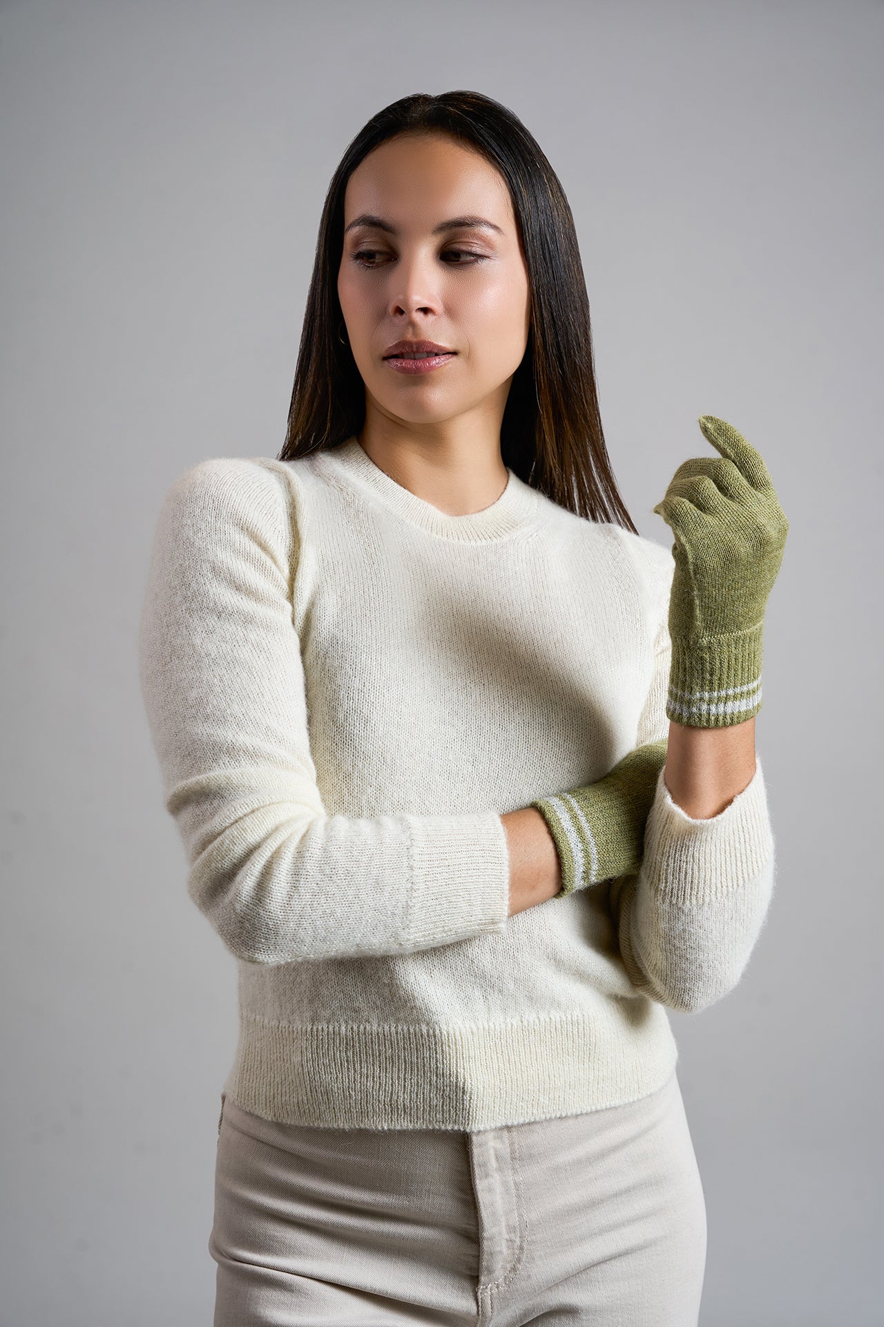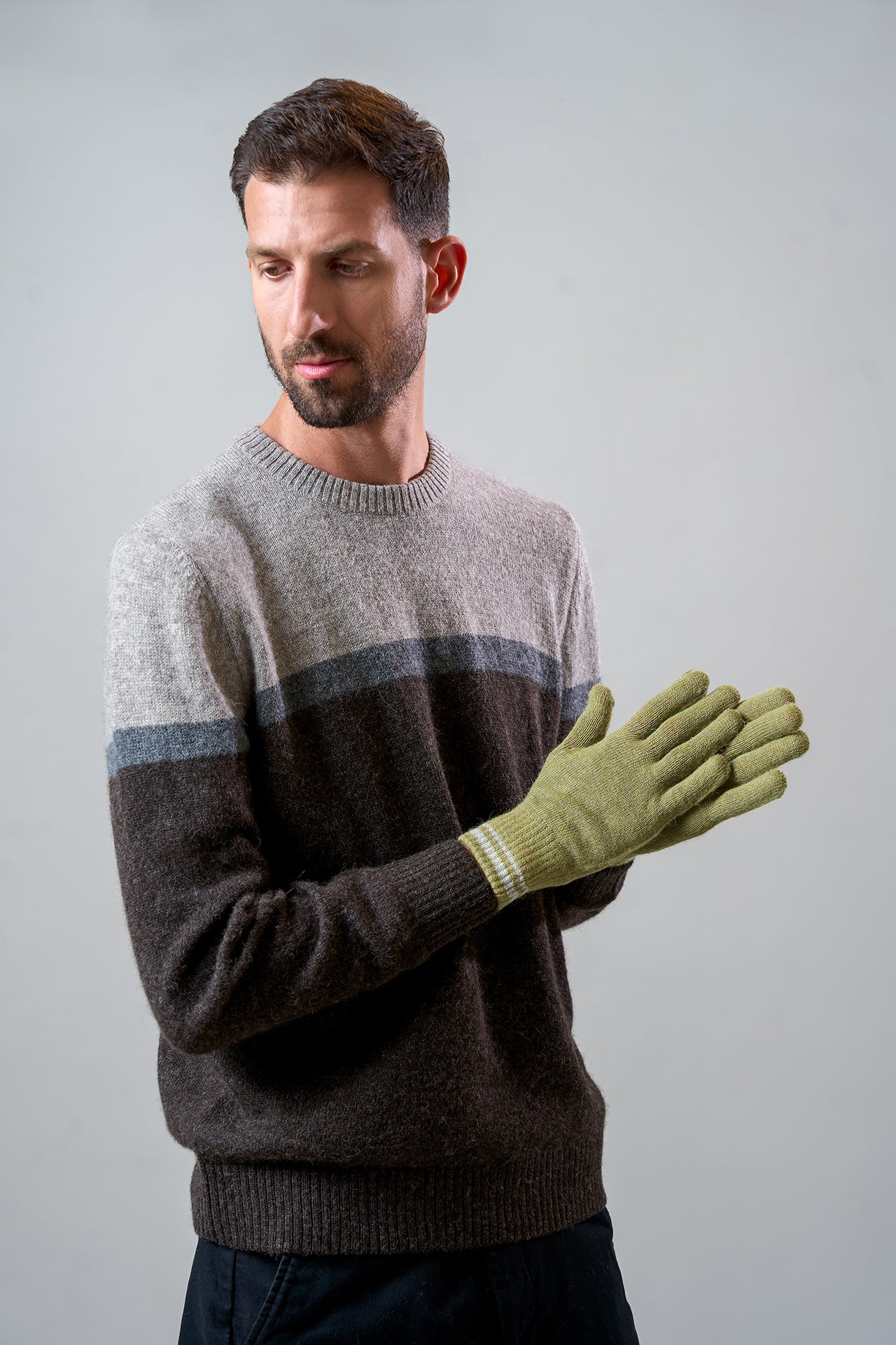 Guante Remate 103 confeccionado en alpaca, unisex, de color entero con diseño a rayas en los puños. Ofrece un accesorio cálido, elegante y versátil, ideal para complementar cualquier look. | Material predominante: Alpaca