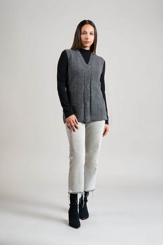 Chaleco Remate 300 en tonalidad gris, elaborado en lana y baby alpaca. | Material predominante:...