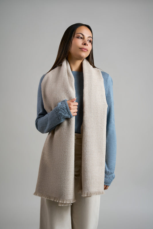 Estola Remate 167 confeccionada en alpaca eco de color entero, con desflechado corto en los...