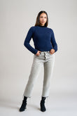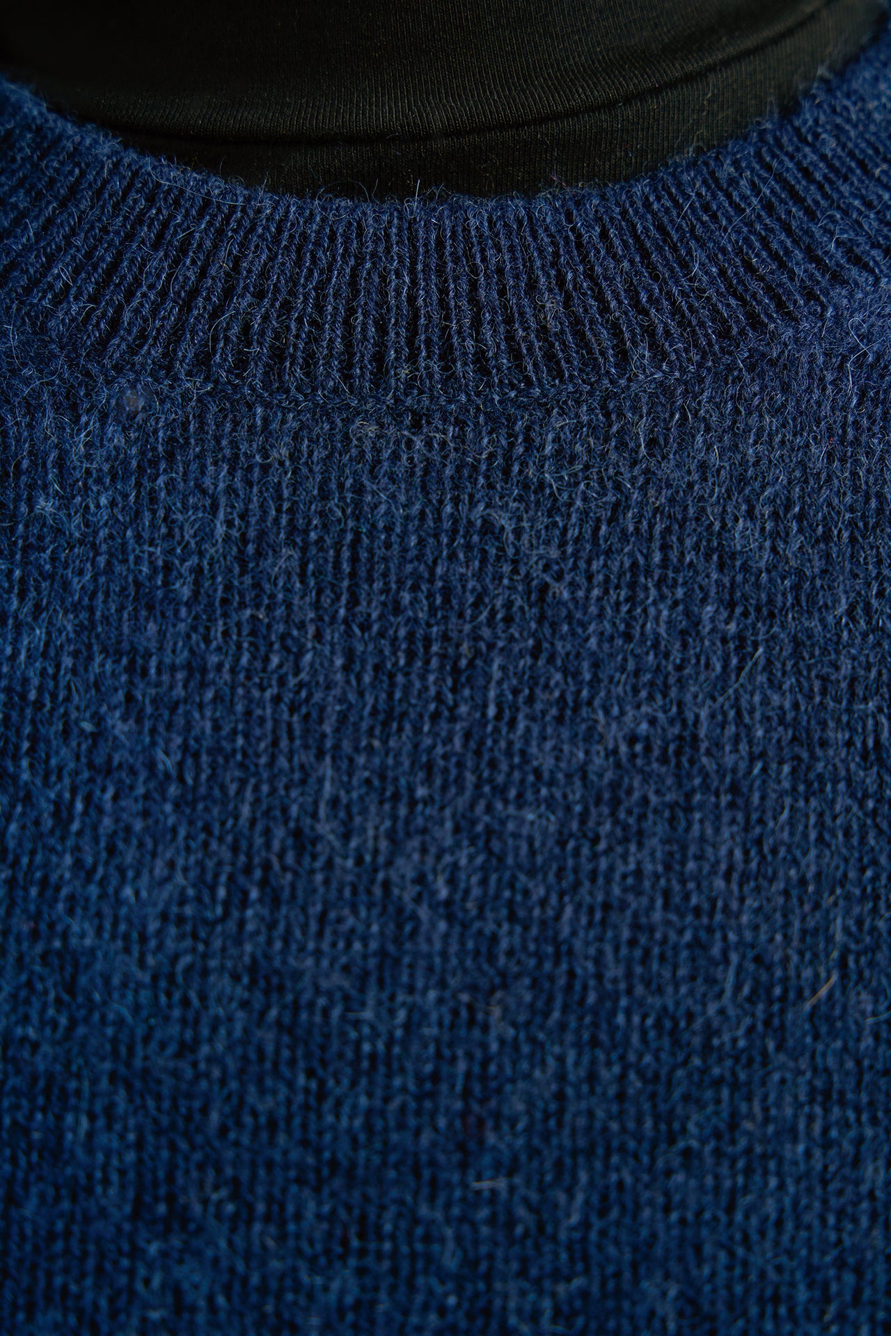 Chompa Remate 129, confeccionada en 100% woolen baby alpaca. Presenta cuello redondo, manga larga y pretinas en puños y cintura, ofreciendo un ajuste cómodo y un estilo clásico con una textura suave y abrigadora. | Material predominante: Baby Alpaca
