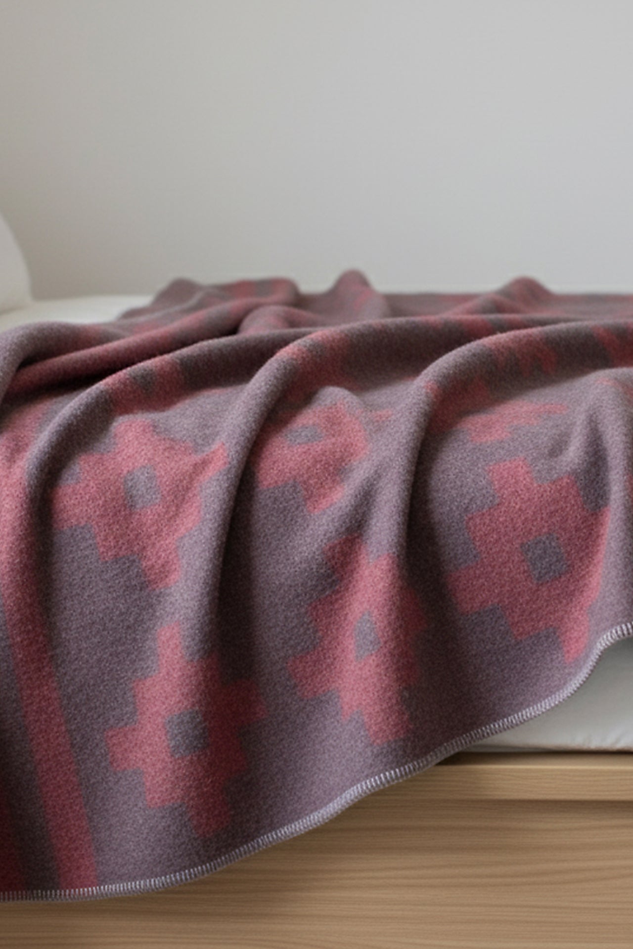 Disfruta de la suavidad de nuestra frazada de alpaca reversible, ideal para este invierno. Su elegante diseño en tonos rosados y grises añade un toque de estilo a cualquier habitación. Ligera y cálida es la compañera perfecta para tu descanso. | Material predominante: Alpaca