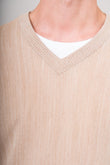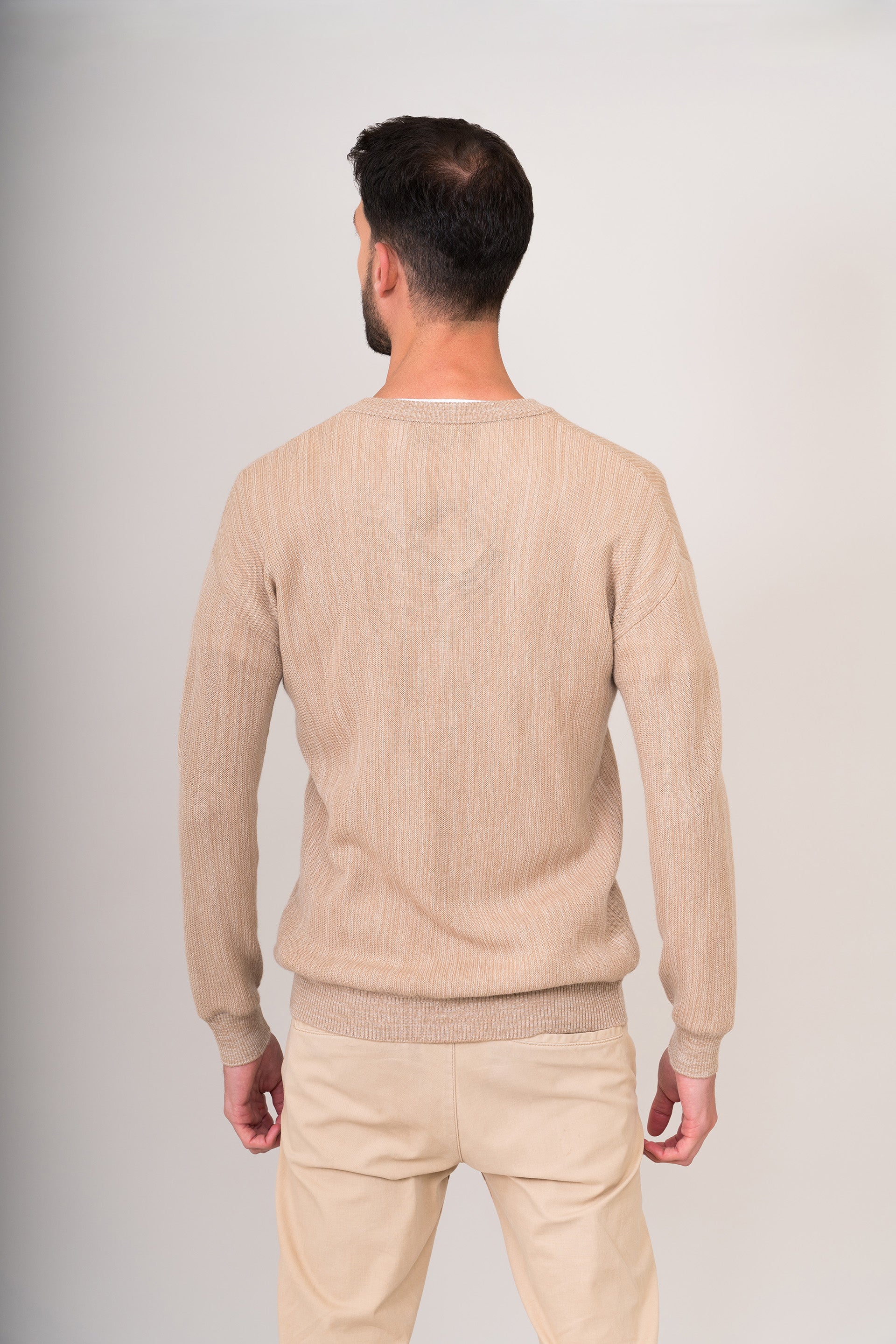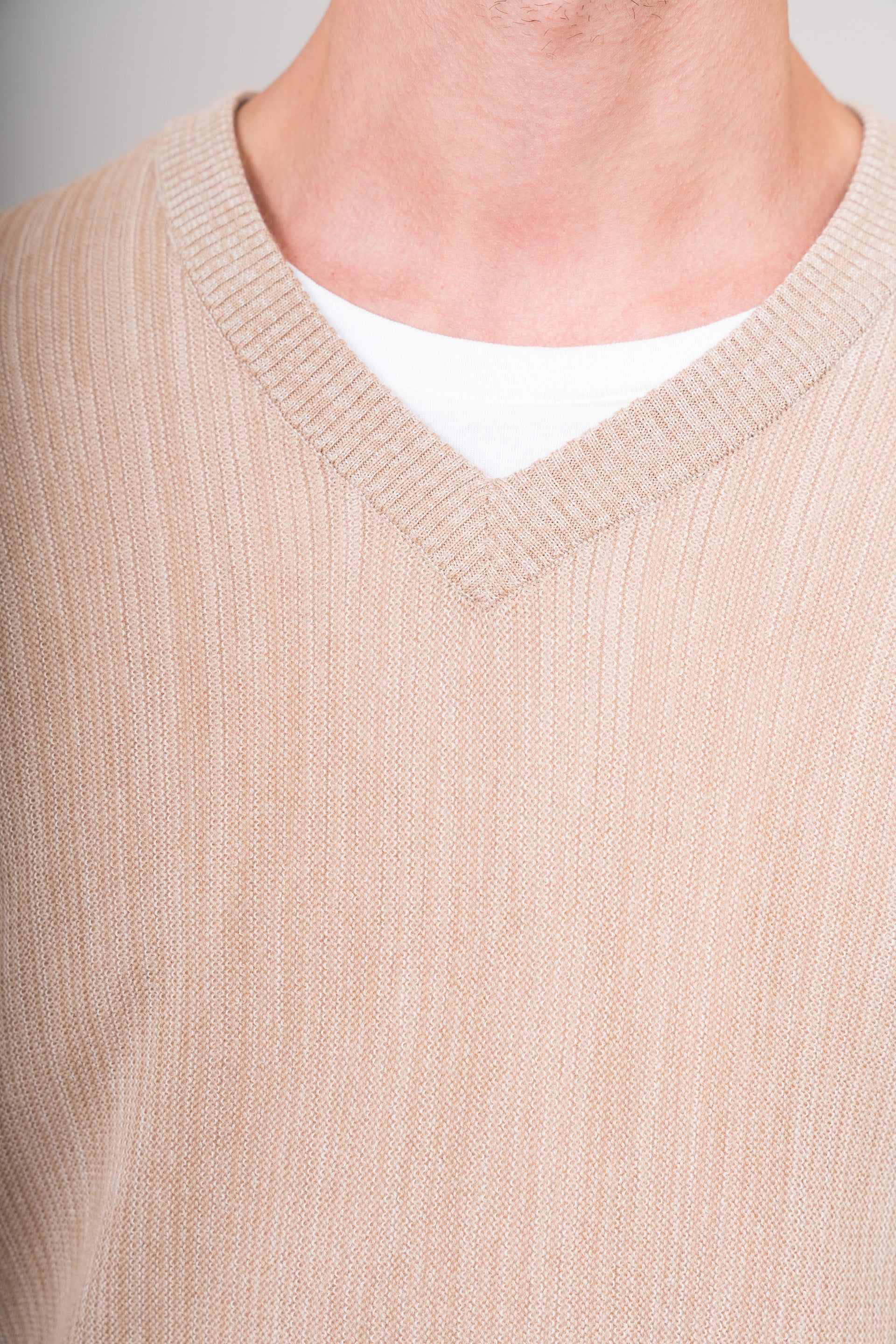 Suéter de punto fino con textura acanalada, ideal para un look casual elegante. El cuello en V le da un toque clásico y versátil. Confeccionado en una mezcla de lana y poliamida, ofrece suavidad, calidez y durabilidad. El corte recto y las mangas largas aseguran un ajuste cómodo, mientras que el bajo en punto canalé añade un detalle de estilo. | Material predominante: Lana