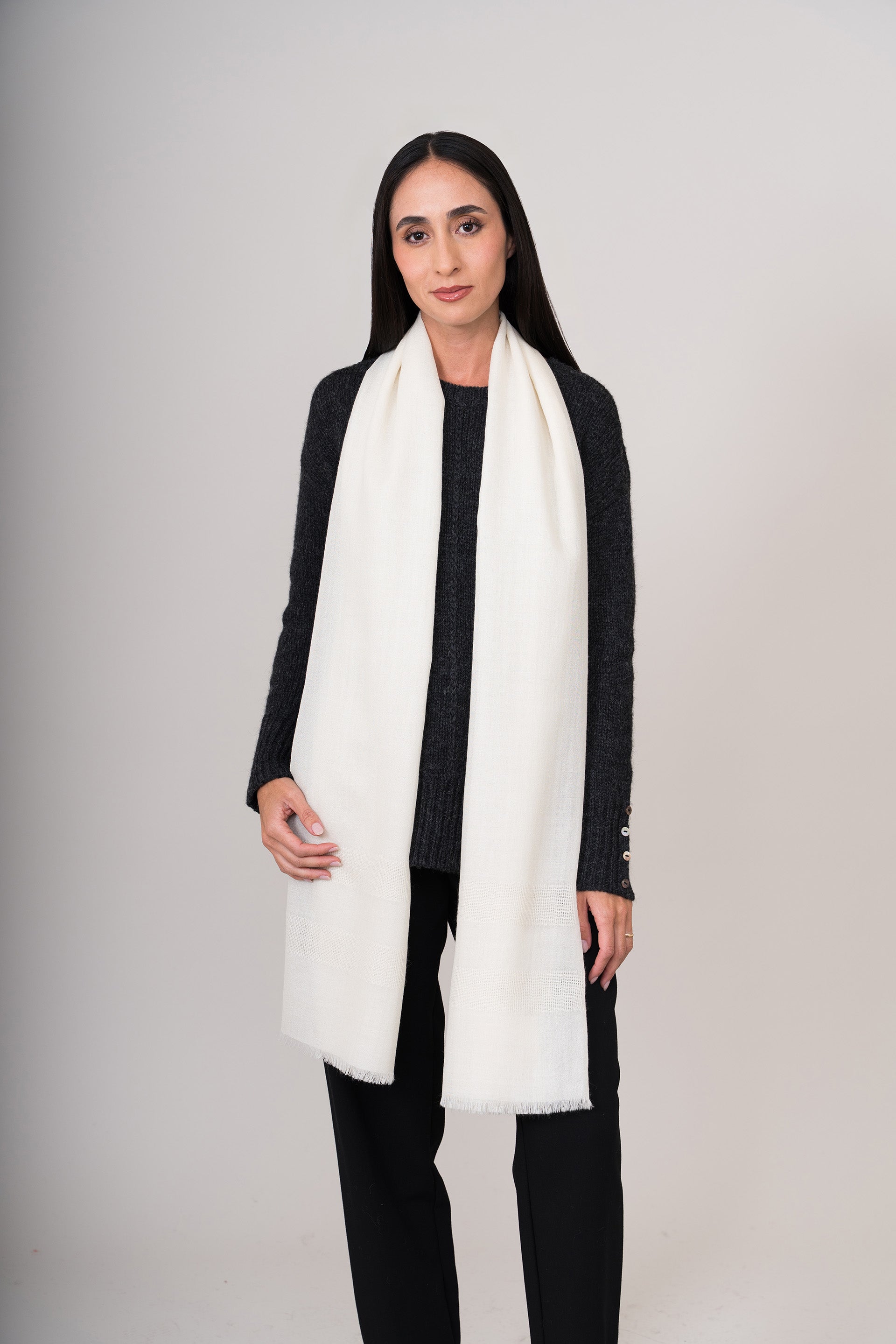 Esta estola es una pieza de lujo, ideal para quienes buscan un accesorio cálido, suave y elegante. Elaborado en baby alpaca especial garantiza una sensación de confort inigualable, mientras que el diseño sencillo y los flecos le dan un toque clásico y sofisticado. | Material predominante: Alpaca